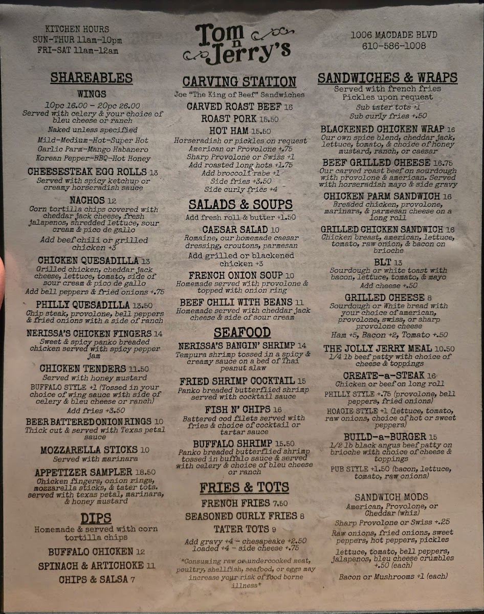 Tom N Jerry's offers a straightforward menu that matches its relaxed sports bar vibe, featuring casual bites and comforting drinks designed to enjoy throughout the day or into the evening. Whether you’re grabbing a quick lunch break or settling in for a night of local music and cold beer, the menu supports a friendly, no-fuss atmosphere.